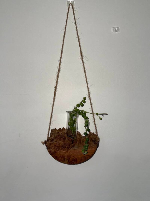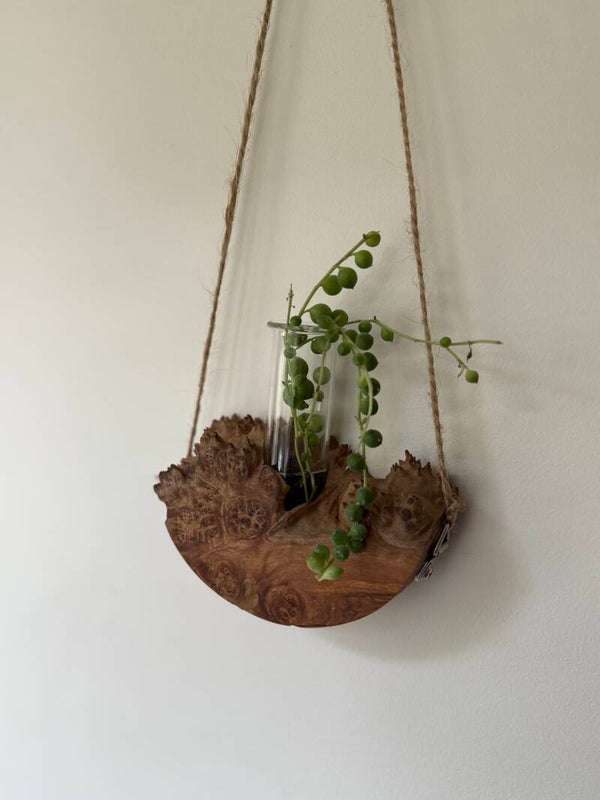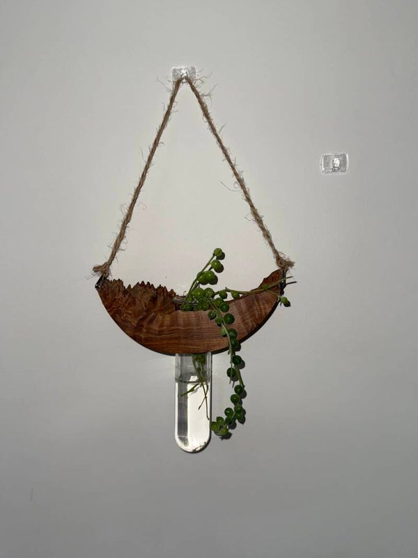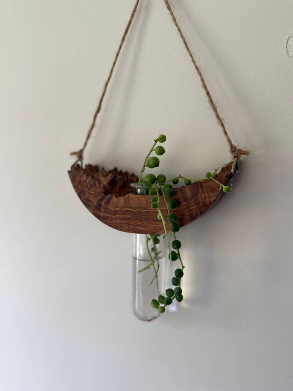 Includes a glass test tube which fits into the hole in the timber - suitable for cut flowers and propagating plants.