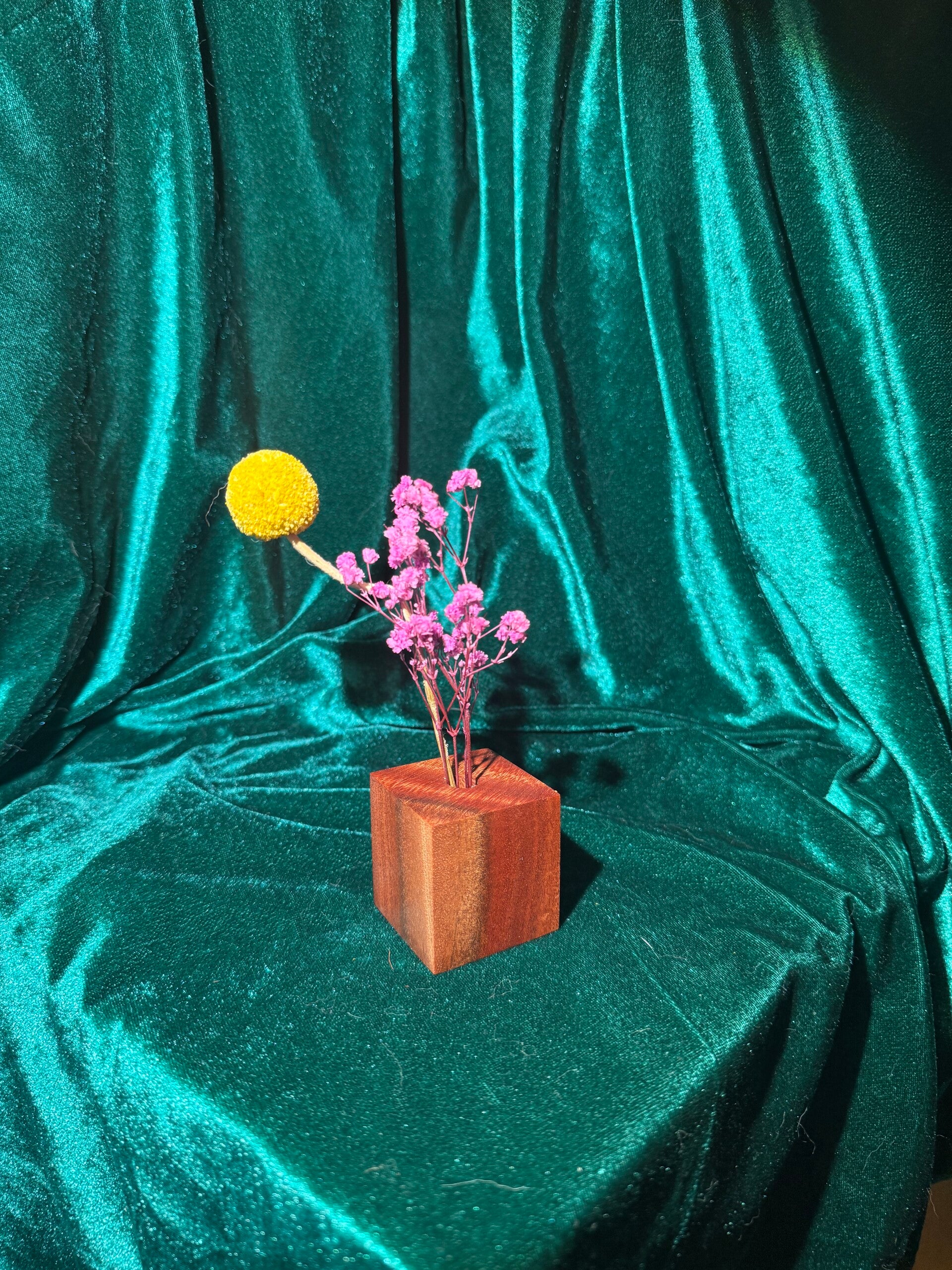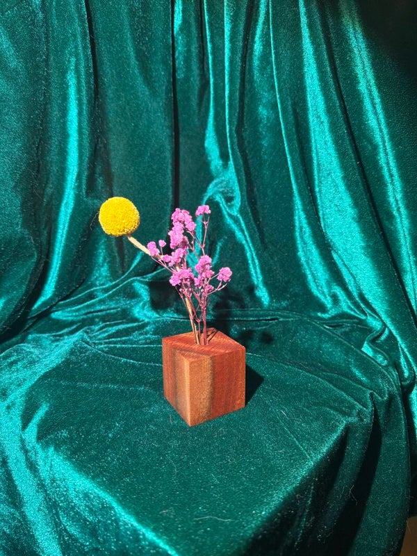 These bud vases can be arranged on a flat surface, around other wooden items, or together with other bud vases of different timbers and sizes.
