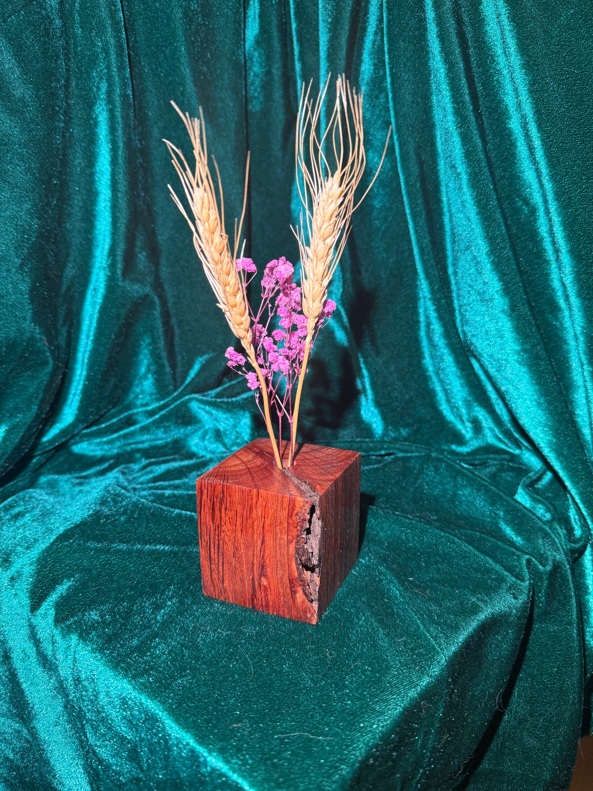 These bud vases can be arranged on a flat surface, around other wooden items, or together with other bud vases of different timbers and sizes.