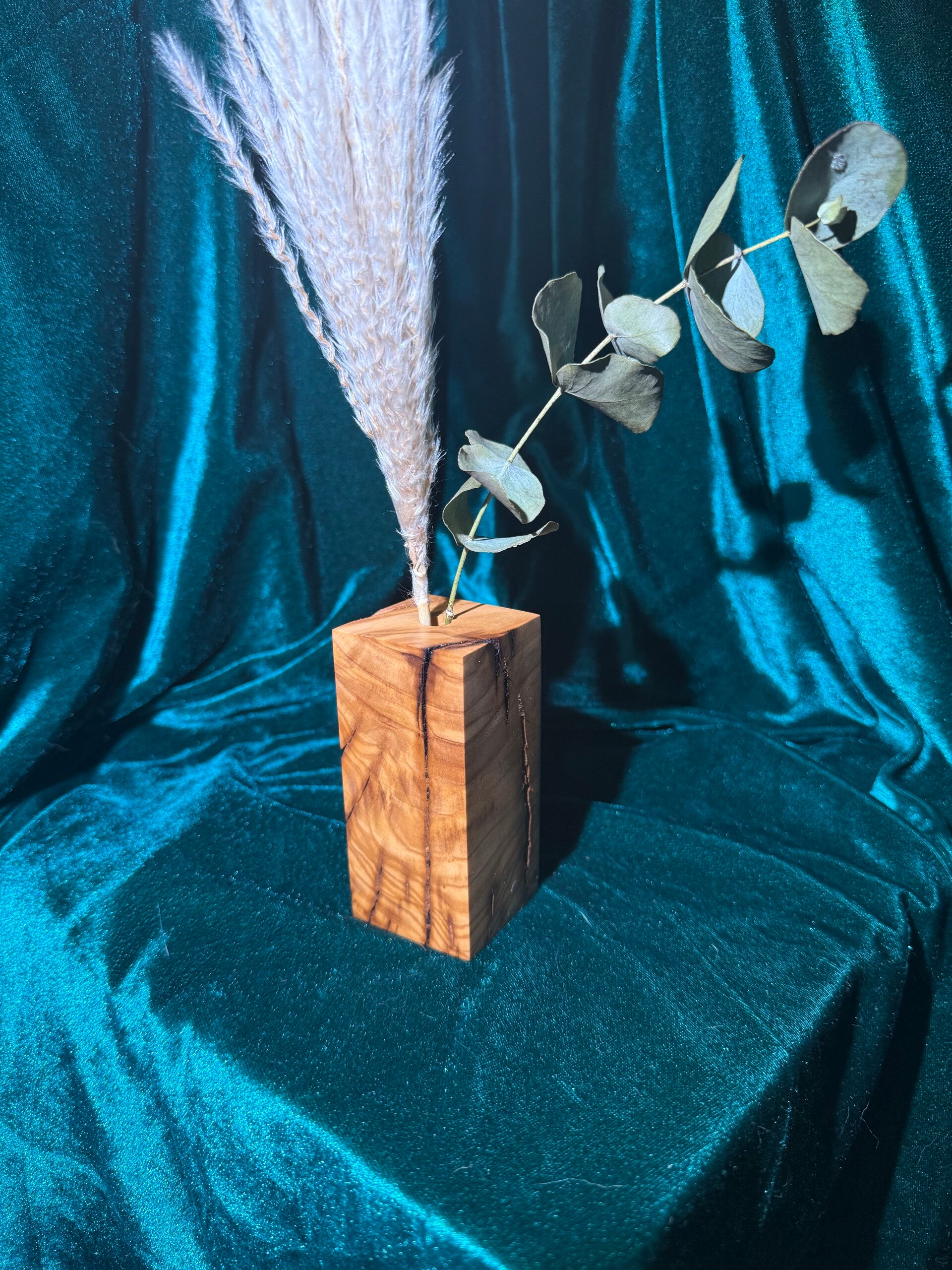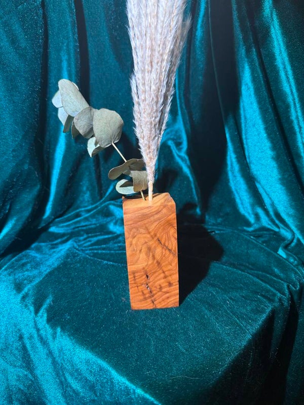 These bud vases can be arranged on a flat surface, around other wooden items, or together with other bud vases of different timbers and sizes.